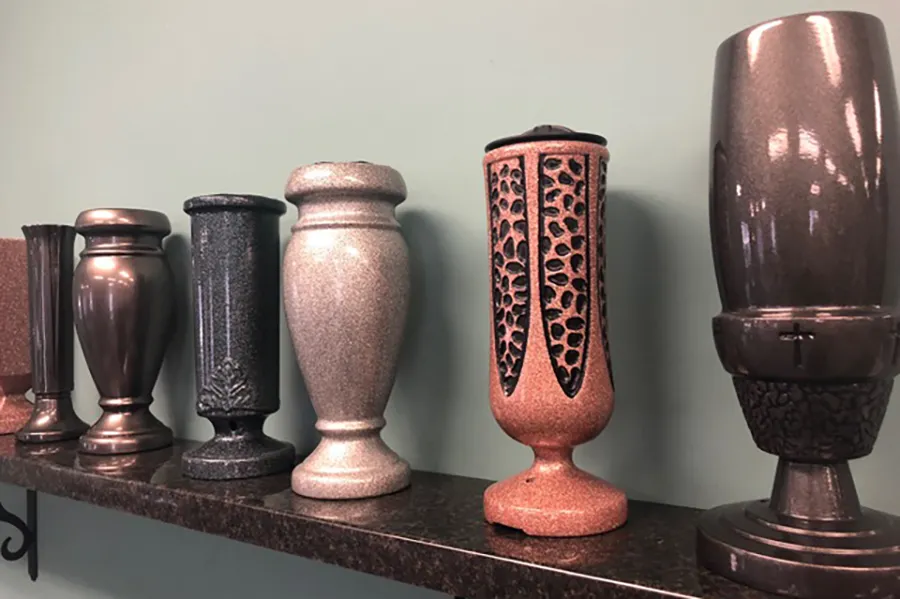 We offer a variety of vases and urns in different styles, sizes, and colors to complement your loved one’s memorial. Each piece is crafted with care to provide a meaningful and lasting tribute. We’re here to help you choose the option that best reflects your needs and honors the memory of your loved one.