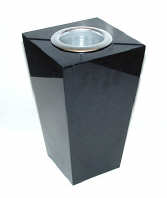 A heavy gauge stainless steel strap bolts to the bottom of the vase and inserts between the die and the base of the monument. The vase cannot be removed without moving the die. A perfect solution.